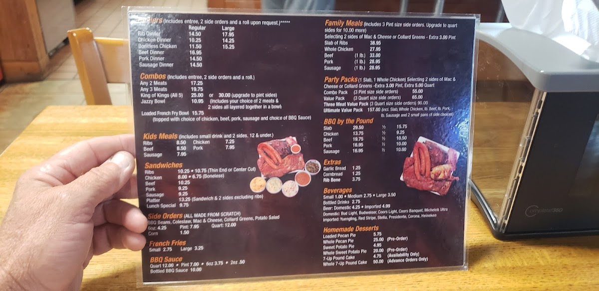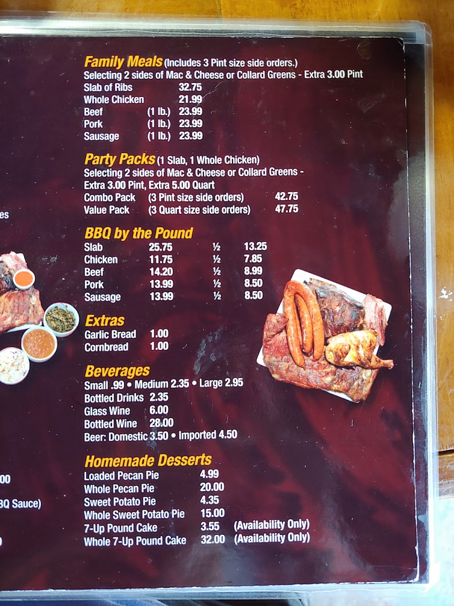 Your meal wouldn’t be complete without sampling their homemade sides, such as the velvety Macaroni & Cheese (available on Fridays only) or the savory Collard Greens. Guests rave about the BBQ Beans and the Potato Salad, making them perfect complements to any main dish. And if you still have room, you can cap off your meal with a slice of their delightful 7up pound cake, which many say is a must-try!