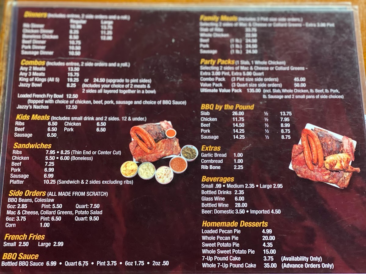 At Jazzy's BBQ, you can immerse yourself in a feast of options that include everything from succulent ribs, juicy chicken, and classic beef to flavorful pork and hearty sausage. A standout favorite among patrons is the King Of Kings, a glorious platter featuring a mouthwatering medley of all five meats for just $15.25. It’s a true testament to the art of barbecue and perfect for those who want to indulge in a hearty meal. For a lighter yet equally satisfying treat, try the Rib Sandwich for $5.99 or the Chicken Sandwich for only $4.25, both of which are guaranteed to hit the flavor notes right on the head.